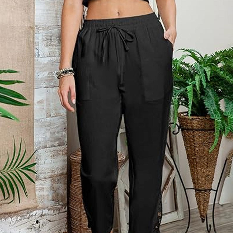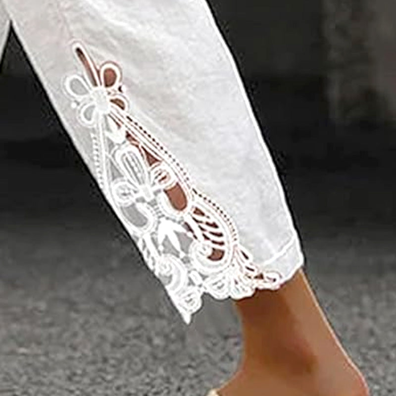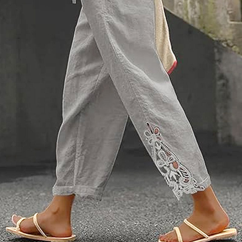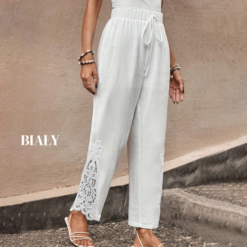 Съдържание на опаковката: 1* Модерни дамски панталони с еластична талия с бродирани вложки
