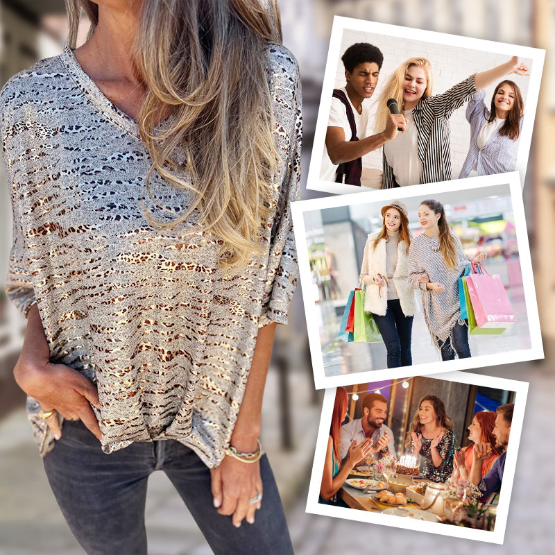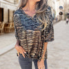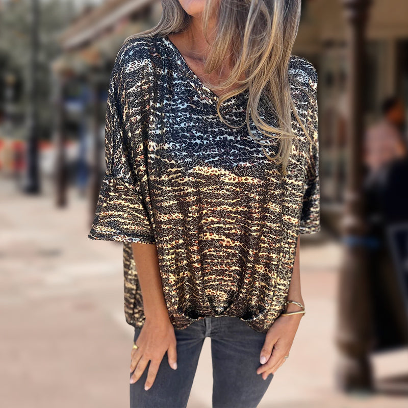 Пакетът включва: 1 * Дамска тениска с V-образно деколте, леопардов принт и къси ръкави